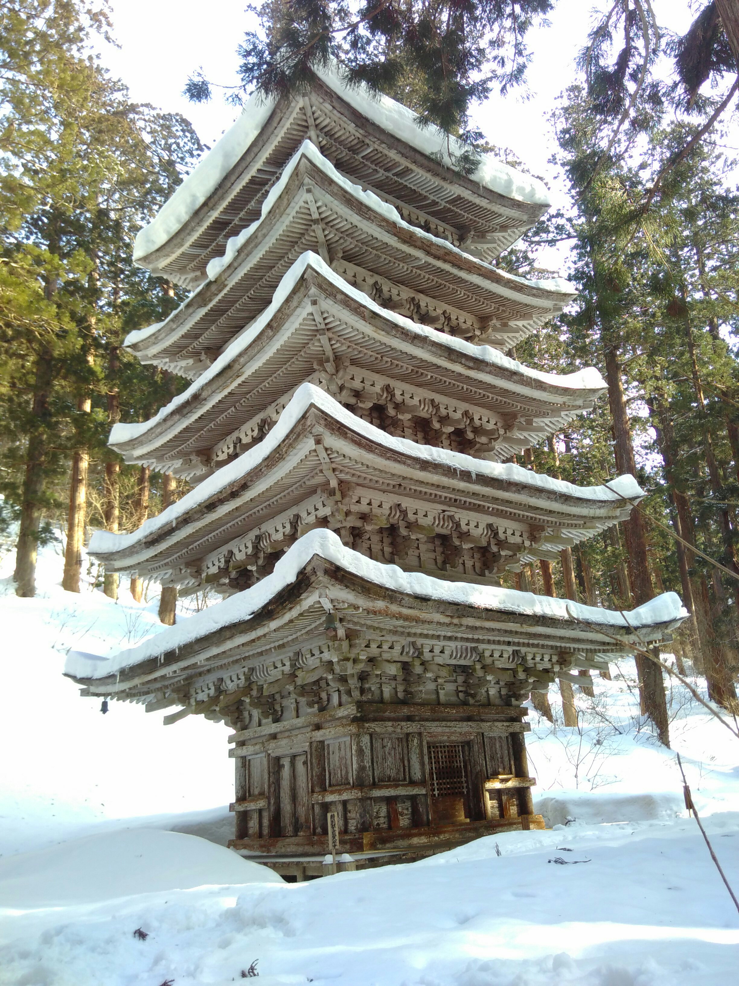 Wie immer brauchen wir ewig zum loskommen. Man kann in dem Auto keine zwei Handgriffe tun, ohne zwischendurch alles einmal umzuräumen. Irgendwann sind wir aber so weit, und fahren zu den drei heiligen Bergen Dewa Sanzan. Wir fahren auf einer kleinen Mautstraße (eigentlich Piste) bis auf den kleinsten der Berge. Der Schnee türmt sich wieder höher als das Auto.