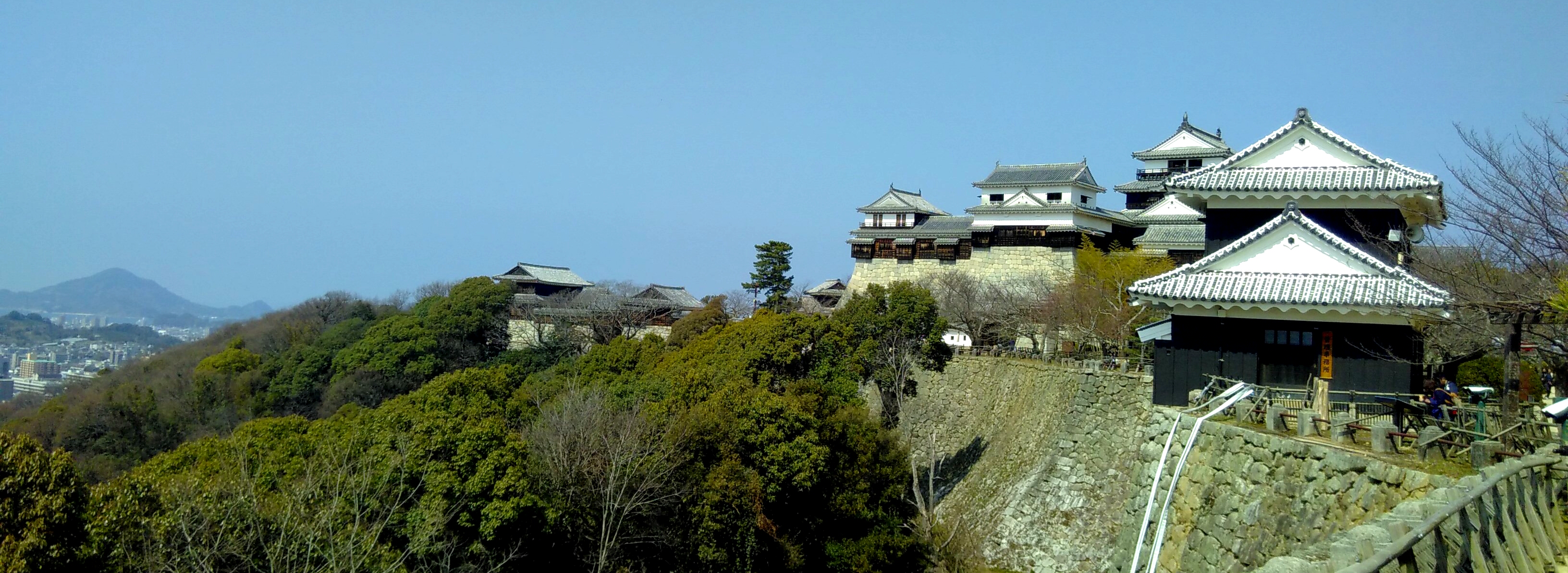 Dann auf nach Matsuyama. Wir parken das Auto am Fuß des Burgbergs, und laufen los. Erstmal rauf auf die Burg.