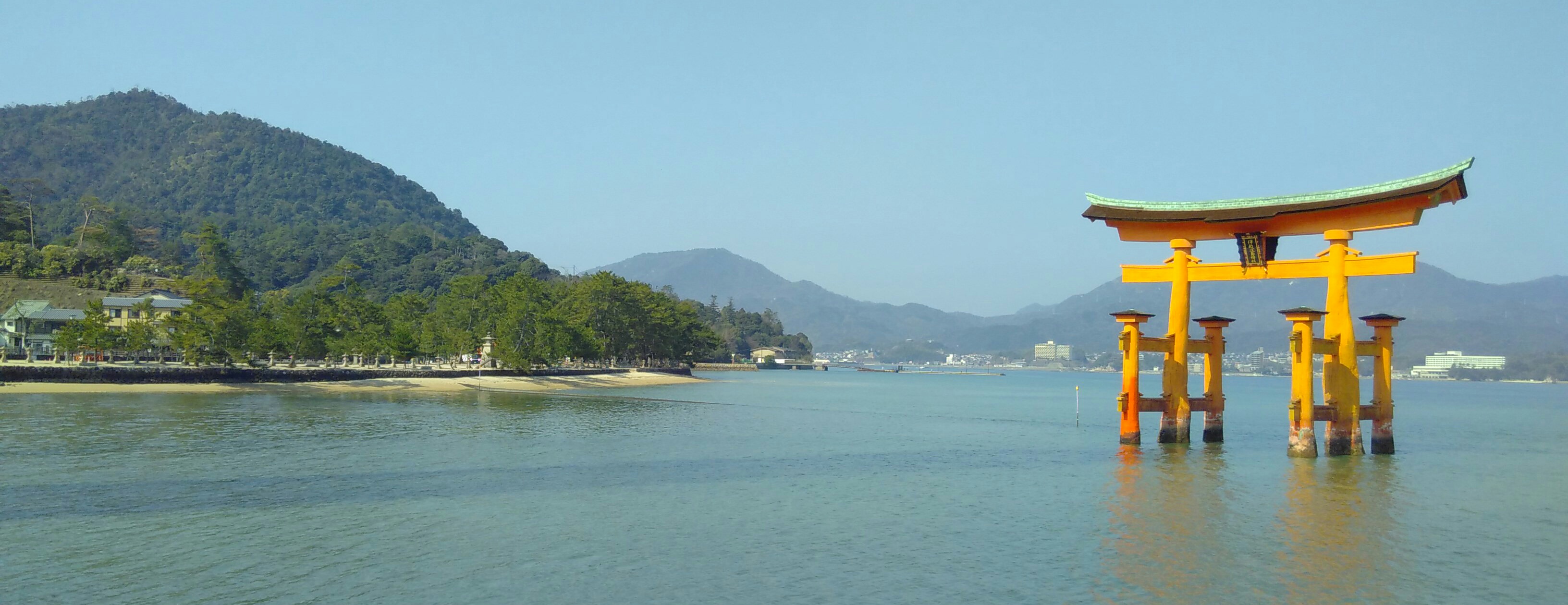 Wir sehen das große Torii und den dazu gehörigen Tempel (nicht im Bild).