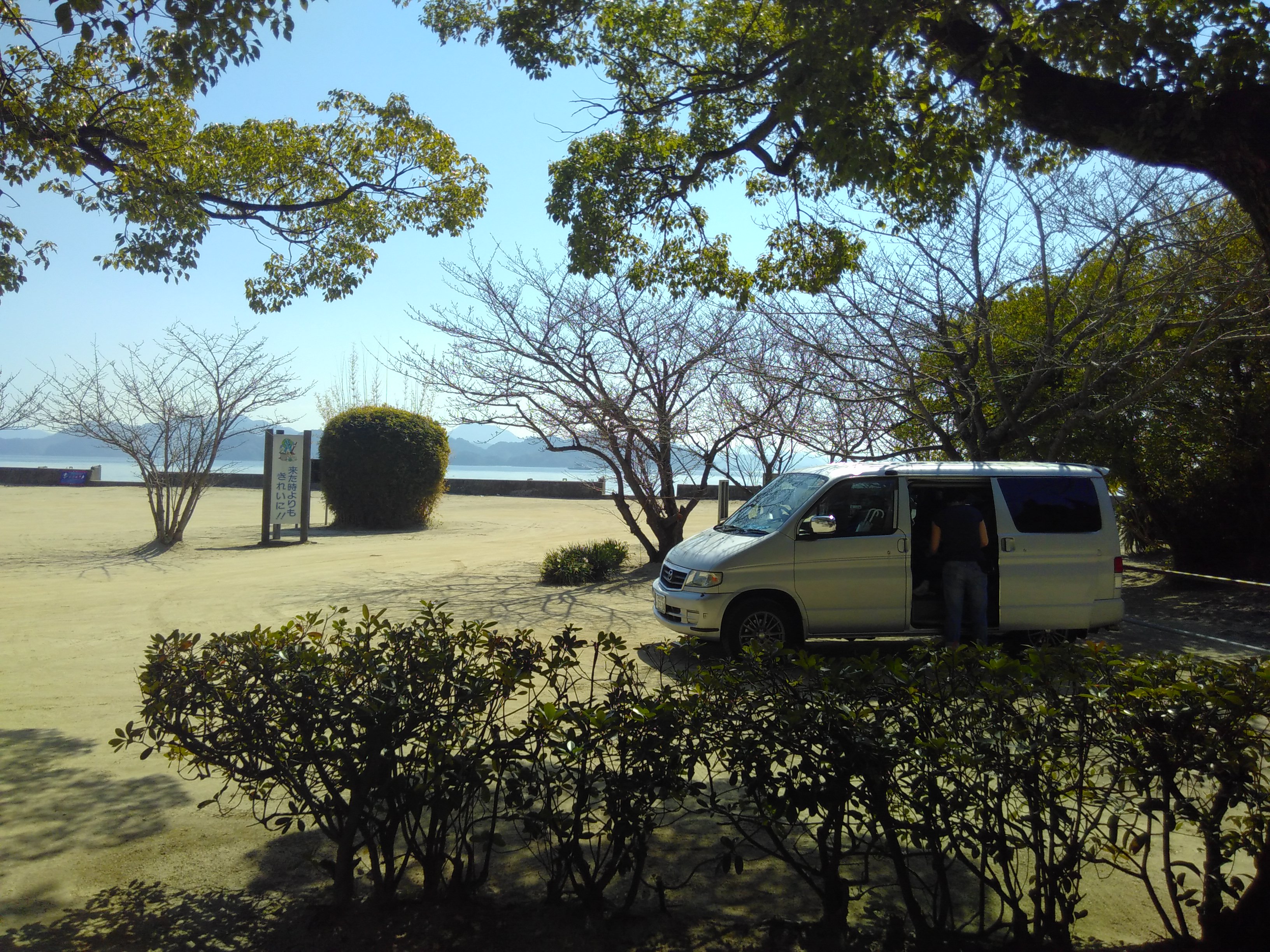 Danach holen wir erst das Auto, dann das Gepäck. Wir haben mittels Google Earth ein kleines Stück Strand in Takehara gefunden, das eventuell ganz nett sein könnte. Zur Not gäbs auch einen michi-no-eki in der Stadt.
