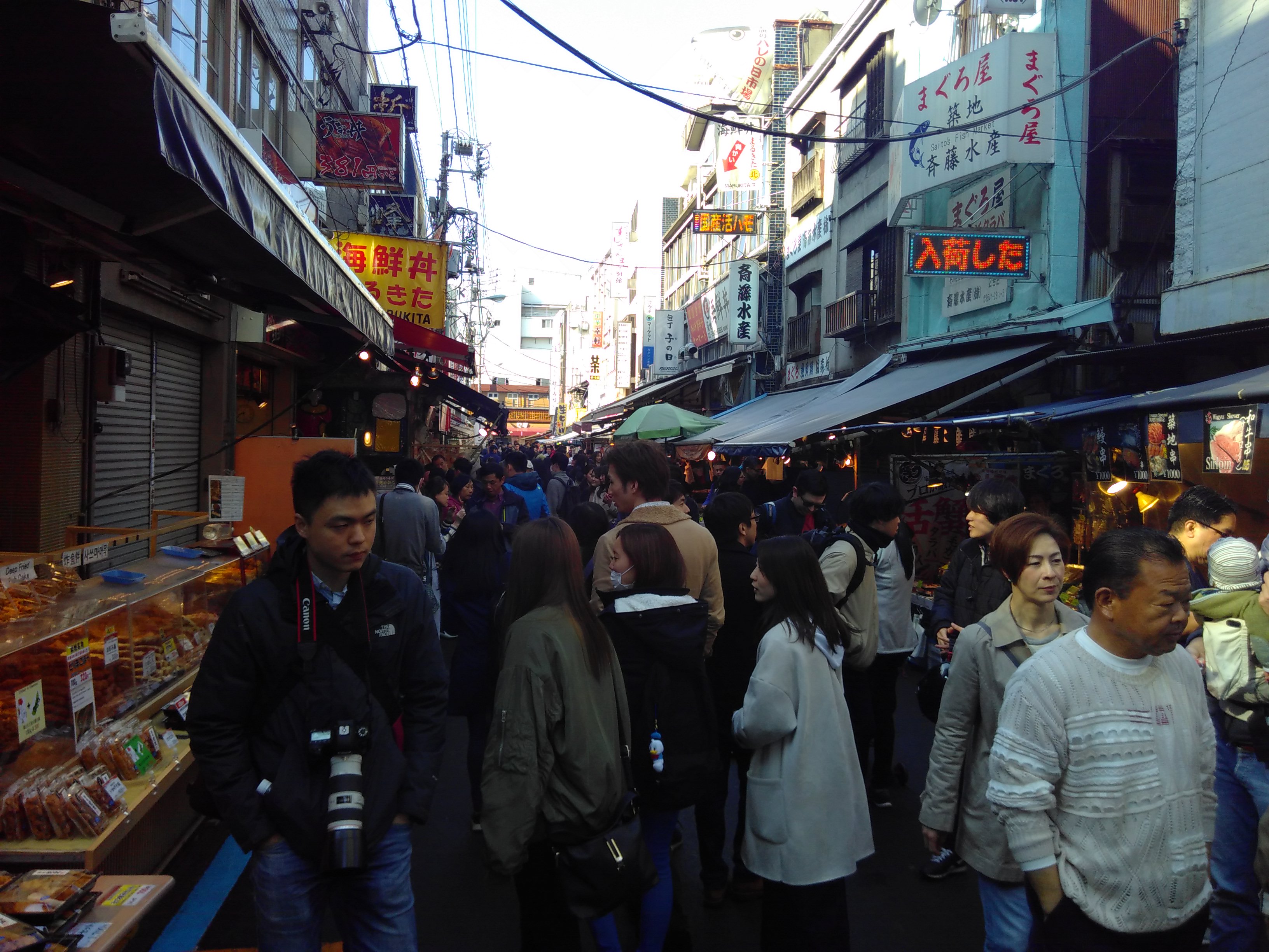 Um kurz nach sieben wackeln wir los. Als erstes wollen wir zum großen Fischmarkt. Als wir um kurz nach acht ankommen fällt uns auf, dass der ja erst um neun auf macht. Also laufen wir erstmal etwas auf dem kleinen vorgelagerten Markt herum, auch ganz interessant.