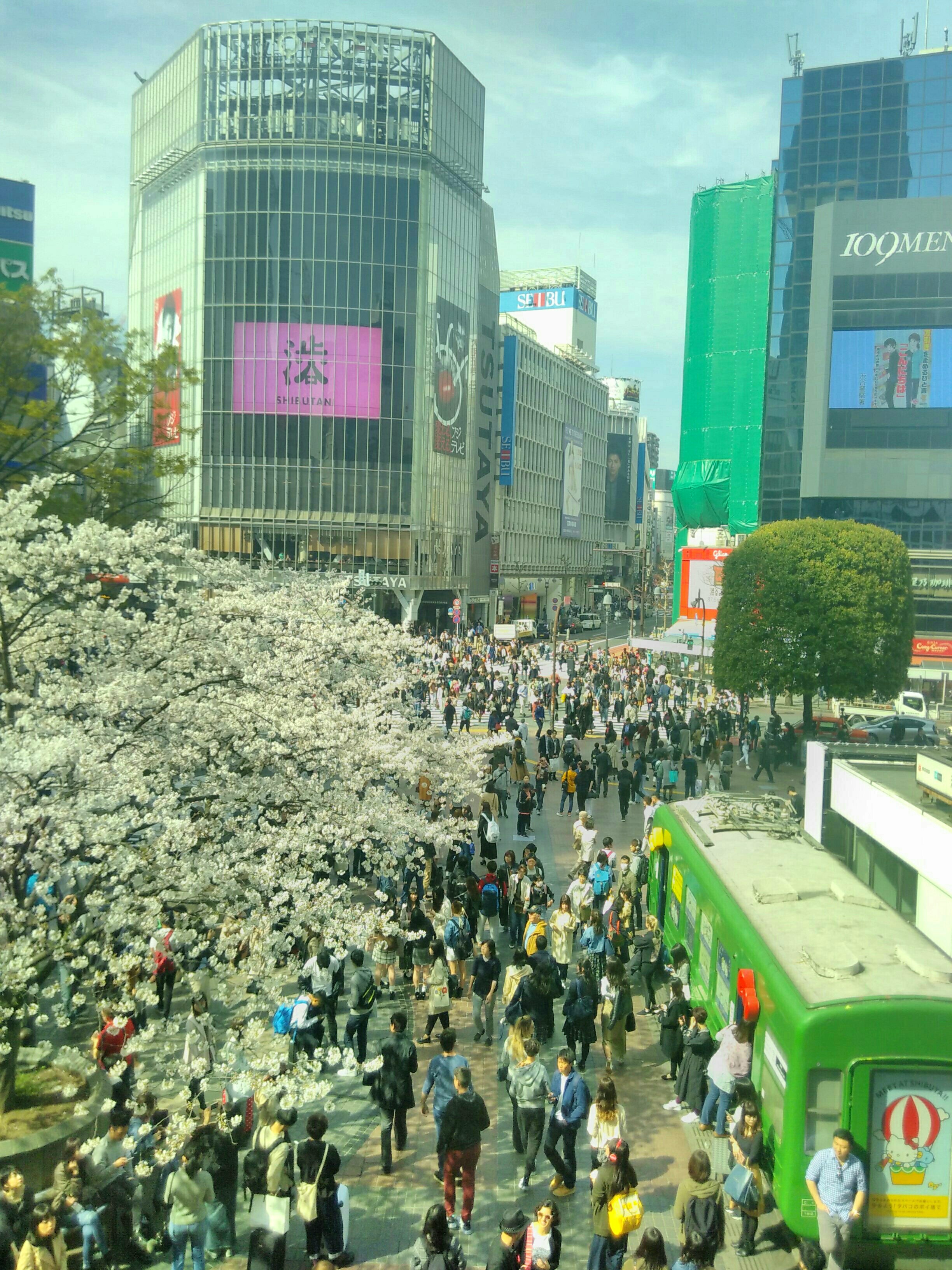 Jetzt sind wir aber super raffiniert. Wir fahren nach Shiboya. Erstens ist da die Statue von Hachikō (und die kann ja wohl nicht geschlossen sein – ist sie auch nicht). Und zweitens ist da eine Kreuzung, die berühmt ist für die Menschenmassen, die da über die Straße rennen (und die kann ja nicht zu voll sein – ist sie auch nicht). Der Plan geht auf. Nur einen Platz im Café mit Sicht auf die Kreuzung bekommen wir nicht. Da hätten wir wahrscheinlich im letzten Jahrtausend reservieren müssen. Aber vom Bahnhof aus kann man auch ganz gut sehen.